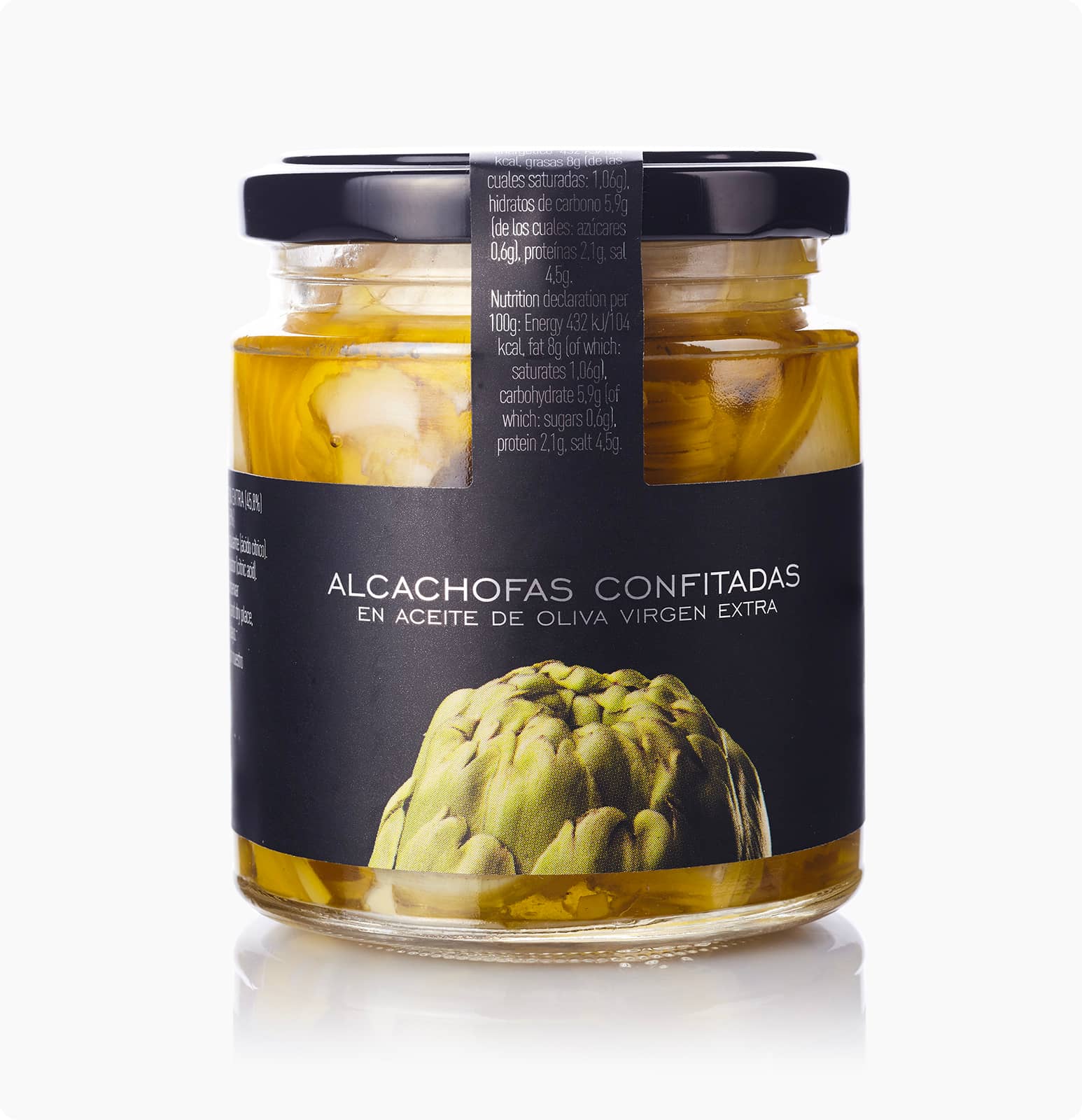 Artyčoky, extra panenský olivový olej (40%), sůl, okyselovadlo (kyselina citronová).
