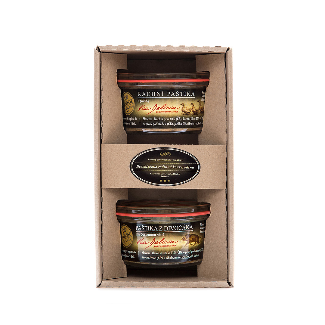 Tato dárková kazeta obsahuje vynikající domácí paštiky, které přinášejí kvalitní chuťové zážitky z tradičního českého řemesla. Složení paštik je pečlivě vybrané, což zajišťuje jedinečnou chuť a texturu. Kazeta je ideální pro milovníky jemných a vysoce kvalitních paštik.