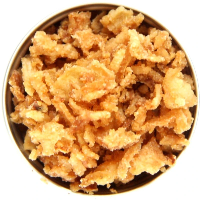Usnadněte si přípravu jídel s naší smaženou a usušenou cibulí. Tato praktická ingredience je skvělá pro dochucení rýže, vařených nebo pečených brambor, omelet, hrachové kaše, čočky, a může být použita k ozdobení polévek nebo podávaná k pečeným masům či párkům.