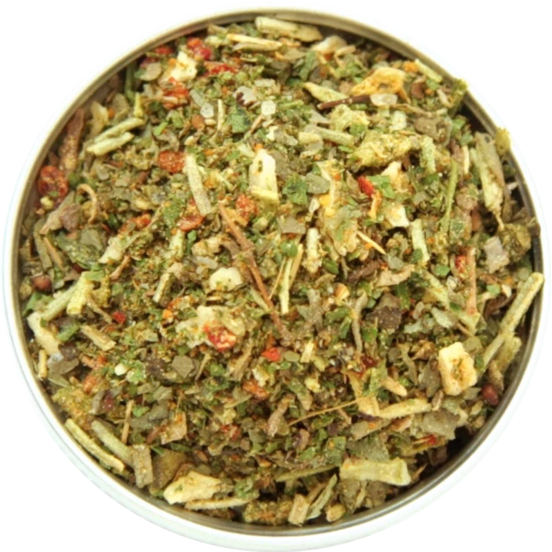 Petržel, tymián, , cibule, sůl (max. 15%), česnek, rozmarýn, bazalka, chilli.