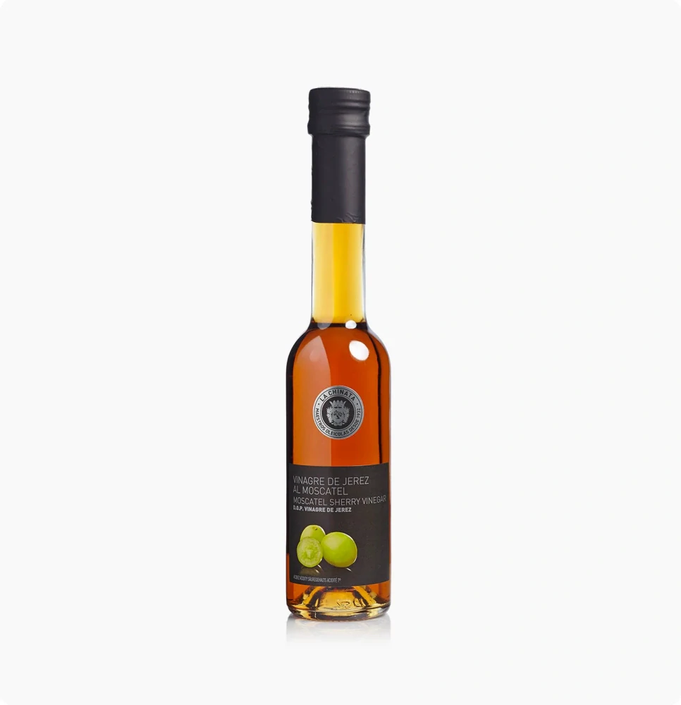 Ocet ze sherry Moscatel La Chinata je charakteristický tím, že je během procesu zrání obohacen vínem typu Moscatel. Jedná se o polosladký ocet sametové textury a zcela jedinečné vůně pocházející z hroznů této odrůdy. Vyrábí se v souladu s tradičními postupy.