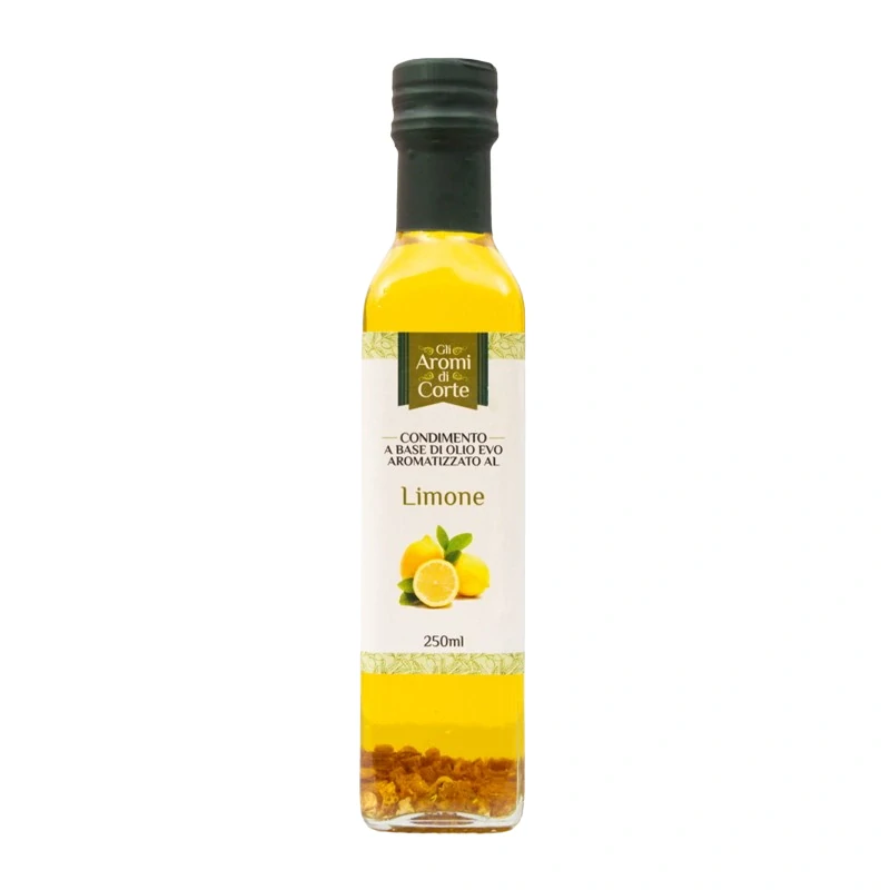 Tradiční italský olivový olej s čerstvými citrony, který spojuje jemnost extra panenského olivového oleje s osvěžujícími tóny citronu. Vyrábí se z vysoce kvalitních oliv pečlivě sklizených a zpracovaných podle italských tradic, aby byly zachovány jejich nutriční hodnoty. Tento olej dodá vašim pokrmům jedinečnou chuť a aroma.