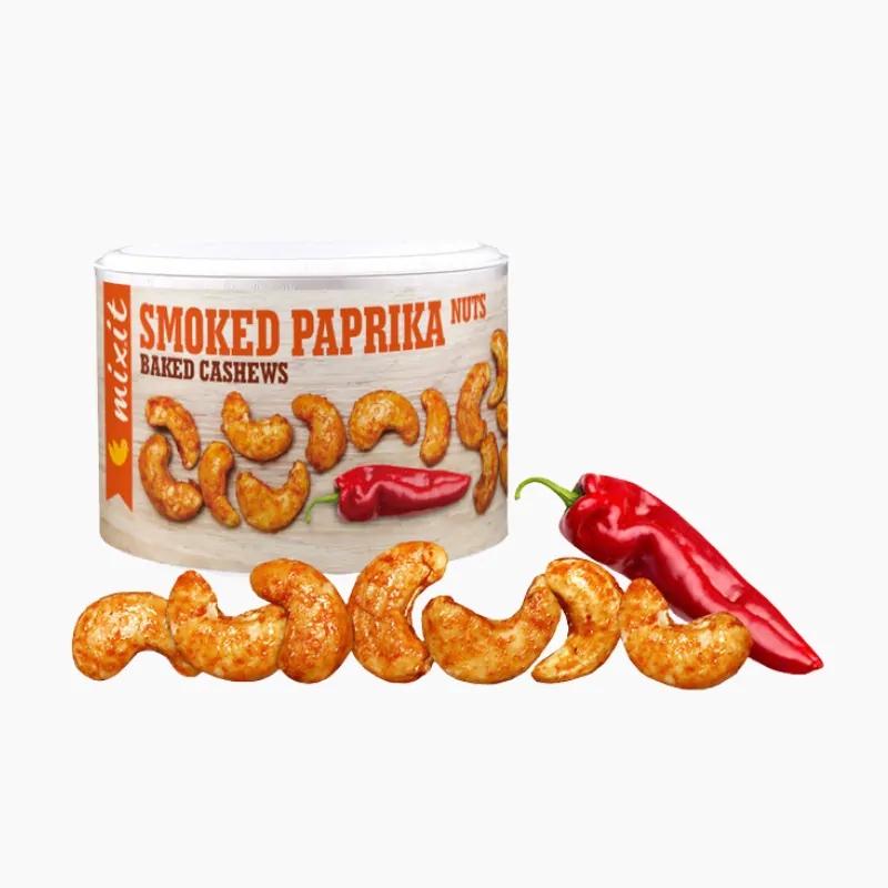 Pokud patříte mezi gurmány, kteří se vyhýbají palivým chutím, ale jemně uzená chuť vás láká, tyto oříšky jsou pro vás. Sladká červená paprika a jemně uzená kešu oříšky prošly pečlivým procesem marinování a byly naloženy do speciální směsi koření. Poté si odpočinuly v domácí udírně, aby se plné energie dostaly až k vám. Bez cukru, barviv, éček, palmového oleje nebo aromat.