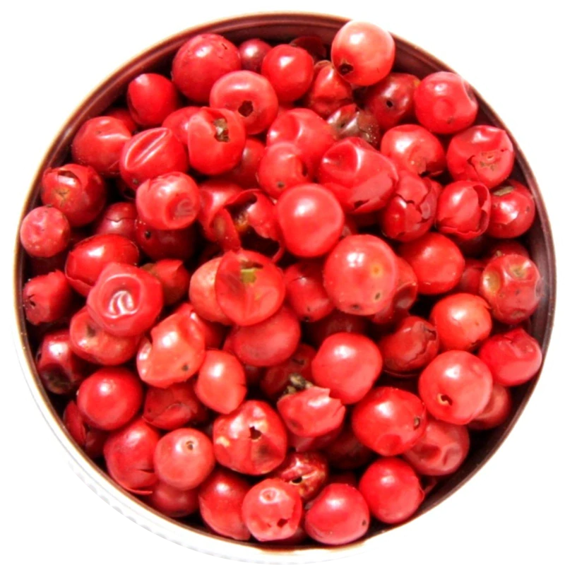 Mírně sladké kuličky růžového pepře z Brazílie, známé také jako plody pepřovce brazilského, dodají jídlu dekorativní nádech a jemně nasládlou chuť. Skvěle se hodí do rýže, bílých omáček, a také do dezertů, zmrzlin nebo pudinků.